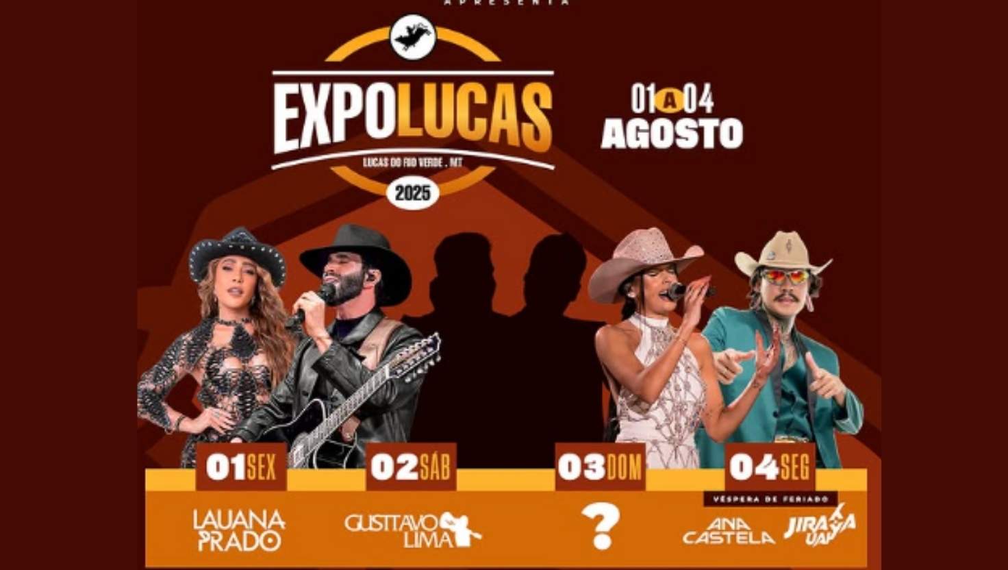A EXPOLUCAS 2025 ocorrerá entre os dias 1º e 4 de agosto e reunirá uma ampla variedade de atrações. Além dos shows, o evento contará com exposições de produtos agropecuários, feira de negócios, praça de alimentação, parque de diversões e ações voltadas para o público infantil e familiar.